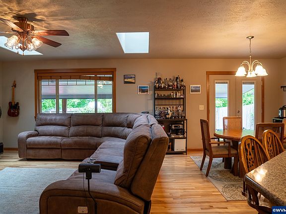 Welcome to desirable Sagan Park Estates! This home features a great room concept. Open living areas with hickory hardwood floors. 2 Skylights in living room, one operable, and solar tubes in baths and hall to bring in an abundance of natural light. Kitchen features quartz counters & eating bar. Induction range & over range microwave 1 year-new. Primary suite includes walk-in closet and slider to an all concrete, covered back patio in a fully fenced backyard. Finished garage with work benches and cabinets.