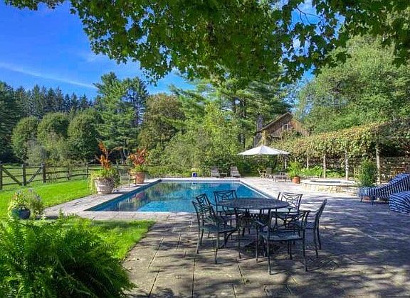 Classic 50 acre estate featuring a long tree-lined driveway with entrance courtyard. 1850 converted barn main residence with six bedrooms. Charming two-bedroom guest cottage. Exterior features include large pond, cascading waterfalls, gunite pool, brook, tennis, entertainment building, barns and privacy. Professionally landscaped with irrigation and outdoor lighting. Tall pine grove. Abuts nature preserve. (Internet 5926842)
