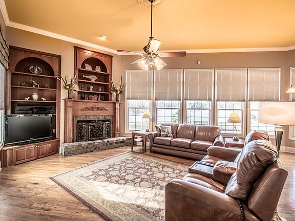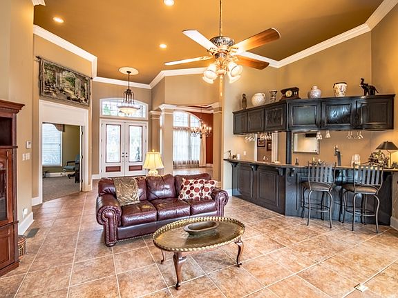 - ROOM FEATURES: Crown Moldings, Built-Ins, Breakfast Bar, Dual Sinks, Solid Surface Counters, Closet System, Coffered Ceiling, Island, Separate Shower, Trey Ceiling, Gas Logs