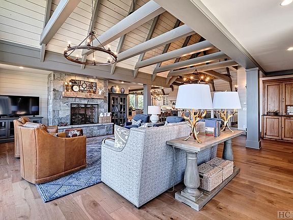 Newly Priced! Picture a place where you truly embrace the magic of the Blue Ridge Mountains for you to call your own. Seeing the home's potential, dedicated curators recaptured a mountain chalet's charm of its original facade + some. Creating new vision of the existing structure, the home was taken to the studs-a complete rebirth. Now, the 4 BR + 4.5 BA home is filled with high-end essentials & exquisite furniture for you to cherish. That's right, the house is offered furnished! This secret community, located halfway between Highlands & Cashiers, is the perfect place to enjoy both towns equally. Prepare yourself to drive down a circular driveway to be faced with unobstructed Whiteside Mountain & Cashiers Valley views. Through the front door, wide plank wood floors are quickly noticed throughout. Your eyes are drawn to cathedral ceilings + impressive timber beams. 2 bedrooms are on the main level with ensuite bathrooms, plus a powder room. Exquisite, the master suite offers a reading nook & astonishing views! The master bathroom has gorgeous marble tile running into the glass shower, double vanity, & large walk-in closet. The main level guest suite also has a reading nook & bathroom with designer printed tile + walk-in shower. An open kitchen & living room are great places to gather. Host Thanksgiving from the kitchen of your dreams. Loaded with luxury appliances like a LaCornue gas range, the kitchen has a plethora of cabinet storage. Open the sliding doors from the dining area to relax by the fire on the screened porch. Continue downstairs, where the den's is highlighted by gas logs in a stone fireplace & bar area. The den leads to 2 ensuite guest rooms, with private baths & a mudroom. Pass through sliding doors to a patio then follow the walkway to bask in never-ending Whiteside Mountain views by the stone firepit. This home is the epitome of modern Southern Appalachian charm & the definition of getting away - Yes, please!