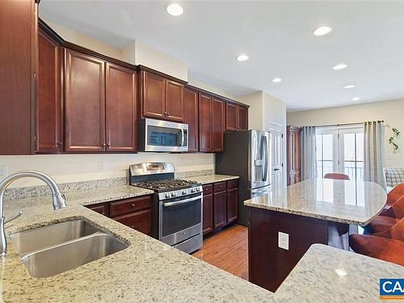 ThisTownhouse is close to downtown Charlottesville! 10 min. to UVA, 5 Min. to Downtown Mall! Dunlora Forest boasts a 7-acre wooded preserve with two trails - one accesses Penn Park, where you can enjoy play spaces and sporting facilities including golf! Beautiful kitchen with huge granite island, stainless appliances, and a large dining area. Large master with tray ceilings has walk-in-closet and private bath with deep soaking tub and separate shower. All baths have granite counters and tile. second floor laundry room. Spacious recreation room in basement and full bath. Additional bedroom can be finished in basement. Balcony off kitchen overlooks the serene preserve. Two designated parking spaces in front of home.,Granite Counter,Wood Cabinets