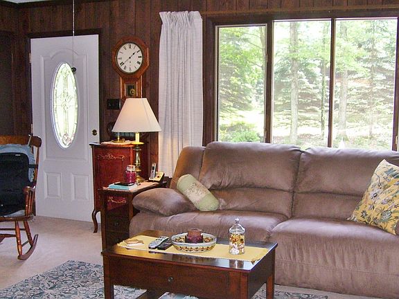 Surrounded by nature and minutes to Promised Land State Park for boating, swimming, fishing and so much more...Situated on a level lot & backed up by nature's bounty this 2 bedroom, 1 bath home has been meticulously maintained and sits on a level lot with a spacious 2 car garage offering plenty of room for all the toys. Featuring an open concept floor plan with a kitchen, dining area & spacious living room with a coal burning stove, 4 season sun room & large deck for entertaining. The lower level is unfinished and offers additional living space. This property has been lovingly maintained and is looking for new owners to call home. Don't pass on this property, you will be more than pleasantly surprised at all it has to offer. Perfect for retirement, starter home or vacation getaway!