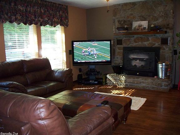 Imagine...mornings overlooking the Ozark Woodlands while sipping your coffee. Imagine evenings reclining by your private pool in the cool of the Ozark Woodlands. This beautiful updated 3 BR home has beautiful wood flowing thru the open great room, beautiful stone fireplace w/wood insert, abundant windows, new cabinetry, breakfast bar, updated baths, spacious bedrooms, fenced yard, covered and uncoved decking, and a beautiful above-ground pool. All this just minutes from lake, golf, tennis, art and shoppin