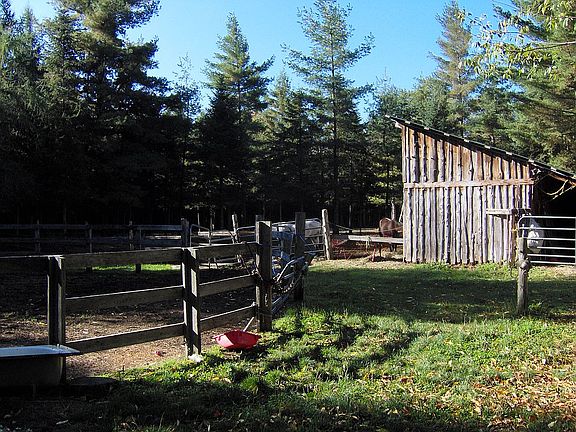 Hunting lodge expanded to spacious home. Separate two car garage with second floor and wood shed. And a horse shed,/chicken coop. Needs extensive repairs on unfinished exterior, and roof that leaks.