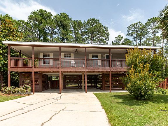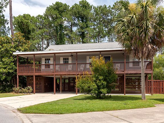 3BR/2BA home on a quiet cul-de-sac, located just 2.8 miles to Gulf/Beach access & just 1.2 miles to Cessna Landing Park which offers boat launch, fishing pier, picnic pavilion, basketball, & playground. This home is situated on a .23 Acre lot & backs to a large preserve area, owned by the HOA. Entering the home, you are greeted by a large wrap around balcony and open floor plan with split bedrooms. The kitchen features plenty of cabinet and countertops space, dining area, & pantry with washer/dryer hookup. The master bedroom is large with a jetted tub, separate shower, & walk-in closet. There is also two additional bedrooms and a full-size hallway bath. Also available are an engineered stamped and county approved plans to enclose underside of the house for a mother-in-law suite.