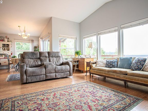 Hidden at the top of a hill... This 2-bedroom 2 bath home has privacy, with a Columbia River View... Open Concept living, Bright and Roomy Kitchen with Eat-at-Bar, Large Pantry, Dining area, Spacious Laundry Room, High Ceilings and Skylights, are some of the Features that make this home a one of a kind find. Also included, a Den/Office option, a Large Primary with walk-in closet, Double sink bathroom suite, and a Primary private deck access. Speaking of the Deck, this home has a Wonderful Large
