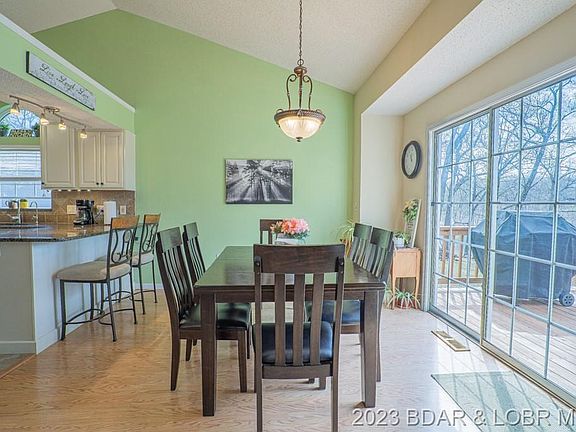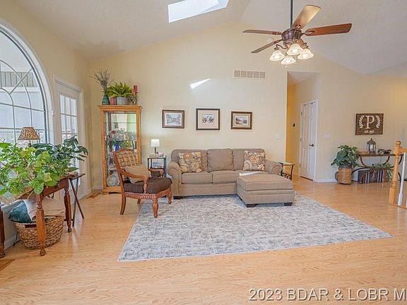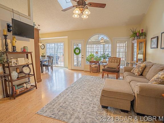 You're going to love the location of this awesome home! The interior lakes at Lake of the Ozarks are a well-kept secret in the Village of Four Seasons. Just a few steps out your back door and you'll be enjoying Good Oak Lake. It's peaceful, perfect for fishing, kayaking, paddle boarding or just relaxing at the waters edge. The driveway is level, the ceilings are vaulted, the sun room is inviting, the gas fireplace is cozy and the storage area off the lower level is perfect for your lawn equipment and water toys. Don't forget to check out the 3-person infrared sauna in the lower level, included in the sale. There's room for everyone in this well-maintained 4/5 bedroom home. Enjoy the HOA amenities...tennis, pickleball, boat launch, community pools, dog park, and playgrounds. You're going to love the Four Seasons Aquatic Center that is currently under construction. Choose Lake Life today!