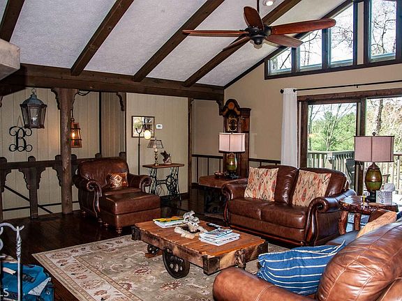 DON'T MISS THE REAL VIDEO TOUR! Located right on the golf course in Sky Valley Country Club is this gorgeous 4 bedroom, 4 bath home. This home has beautiful features including hardwood floors, a massive stone fireplace, and vaulted ceiling with exposed beams. Beautiful valley, mountain, and golf course views await from the back porch off the main living area. The eat-in kitchen features granite counter-tops, beautiful wood cabinets, and build in stainless steel appliances. The master is on the main, looking out at the mountains and valley with porch access. Three guest rooms and a downstairs living area offer plenty of room to accommodate guests. Don't miss this opportunity to have this beautiful view from a centrally located home.