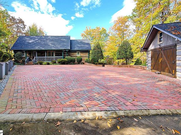 Discover Timber Ridge, a one-of-a-kind log cabin nestled in the serene foothills near Table Rock State Park yet only 50-minutes from Greenville and 30-minutes from both Lake Keowee and Lake Jocassee. This stunning property spans 2.3 acres and showcases tobacco barn beams, offering a rustic charm that perfectly complements its natural surroundings. Enjoy breathtaking views of the Table Rock Reservoir /Greenville Watershed from the expansive full-length porches, ideal for soaking in the peaceful ambiance of the River Bluff Community. The main floor features a spacious primary bedroom and a cozy loft, while the downstairs includes an additional bedroom and bath with access to a private patio area. The property also boasts a 1.5-car garage, perfect for storing a boat and/or mountain car. Whether you seek a permanent residence or a mountain getaway, this gated mini estate provides the perfect escape complete with private berry patch and private walking trails. Never before listed, this private mountaintop retreat radiates ownership pride and is ready for you to call it home.