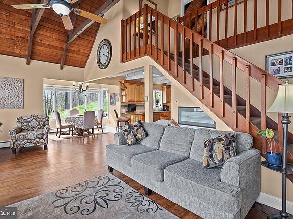 You won't believe your eyes when you drive down this long winding driveway and come upon this amazing home... The views are magnificent to say the least! This home faces 15 acres of preserved wooded land with a mand made pond, nature and wildlife galore. This updated / converted chalet will blow you away when you walk in the door, boasting cathedral ceilings, updated kitchen and baths and a huge deck off of the kitchen/great room combination to enjoy relaxing meals or morning coffee as you gaze at the nature and privacy abound. The four bedrooms include a generous master with updated ensuite with a soaking tub, and a bonus lower level bedroom and full bath off of the family room (main entrance) is perfect for an in-law suite or additional playroom, office or theatre room. Additionally there is a private workshop for the art or woodworking enthusiast, and a combination laundry room office with his and her desks. The matching treehouse is a fun escape for children to play and look out over the view to the trampoline and surrounding domestic and wild animals, and the favorite sledding hill. This is a playground for all ages!