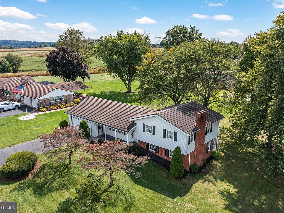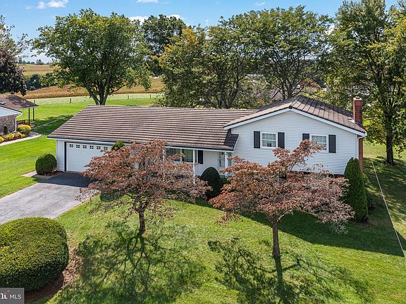 Set atop a hill overlooking the beautiful Bally countryside is this three bedroom, two bath split level home with a surprising amount of living space. Vaulted ceilings can be found upon entering the expansive living room with open beams and ceiling fan, which leads into dining area and eat-in kitchen with pantry, dishwasher, ceiling fan, and access to two-car garage as well as back yard. There are views from almost every (newer) window, especially the three bedrooms on the second level along with fun retro hall bath with tub/shower. The lower level has a large family room with electric fireplace (was once and could be wood-burning again), along with an additional recreation space and full bath with shower stall (great area for "in-law suite" as there is a full daylight walk-out to grade and full sized windows). The lowest level (as there are four in total) is the unfinished basement with electric wall heater (was used as a game room "back in the day" for kids and grandkids). Two-car garage has pull-down stairs to floored attic space with more room for storage. The roof as it is understood is a 100 yr slate roof with great dimension. Such a beautiful location, the property so well maintained, and it can be immediately available for its next owner!