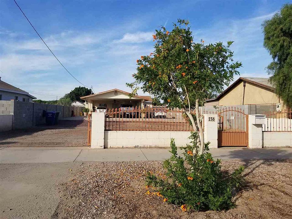 2 bedroom 1 bath home in the heart of Yuma which can be easily converted into a 3 bedroom. Recently remodeled/renovated with new tile, plumbing and interior & exterior paint. Added back porch, front porch/carport and storage shed. Bring all offers!!