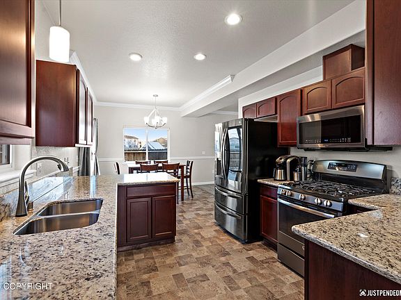 Well maintained home featuring 9' ceilings downstairs/upstairs, Kitchen w/ granite countertops, walk-in pantry, 16'x30' Trex deck off dining room.Adjacent bonus room that can be a formal dining area, office, or study room. Considerable primary suite, walk-in closet, separate shower & soaking tub w/ views of Hatcher's Pass.19x21' 4th bedroom or bonus room w/ Pioneer Peak views