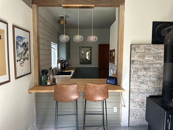 The home boasts 10-foot ceilings, a fully stocked kitchen, brand-new bathroom, and modern amenities including air conditioning, a wood-burning stove, and a mudroom for gear. Outside, enjoy a spacious backyard complete with gardens, a playset, and even an outdoor shower perfect for summer evenings.