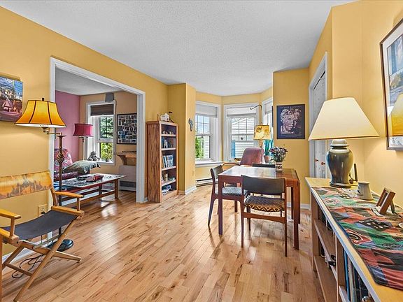 The Southridge Condominiums, in Burlington’s Hill Section, is a boutique building with only ten units that share a large common back yard. Built in 1875, and renovated from a single family mansion, this condo is filled with charm and character. This second-floor unit has been recently renovated and features new custom bathroom with tile walk in shower, maple hardwood floors, Harvey double pane windows, insulation, and Rinnai heating system. The eat-in kitchen has freshly painted cabinets. Flexible floor plan that can work as a second bedroom being a den/home office with custom built-in shelf. Great closet space with wood built ins. Building amenities include: two parking spaces, laundry room, storage locker, bicycle room. The HOA fee covers hot water, water, sewer, trash, landscaping, and plowing/snow removal, ensuring effortless maintenance and convenience. Conveniently located near UVM, Champlain College, and the UVM Medical Center, this condo provides easy access to downtown Burlington via foot and bus, waterfront, and Church Streets vibrant shops and restaurants. Sorry, no pets allowed.
