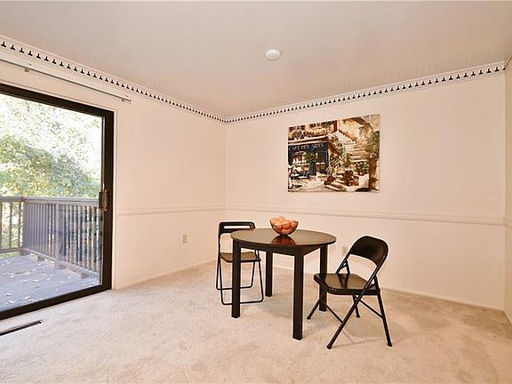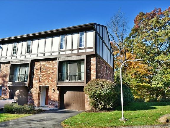 A very desirable neighborhood. Quiet yet Conveniently located with mins to downtown, Ross Park Mall, all major shopping area, Rt19 & I279. Community are with mature landscape and no outlet street, wonderful for a stroll throughout the day. Well maintained three-bedroom end unit with much natural light and neutral decor. Enjoy the beautiful view sitting in the large and private deck overlooking the wood area. You may see a deer or two occasionally. Spacious bright light living room with large sliding glass door and a Juliet balcony. Nice powder room on main floor. Large dinning room with sliding door to balcony. Kitchen has a window over sink, only available for end unit. Master bedroom has direct access to a full bath. Two other good size bedrooms are facing wooded area as well. A finished walk out game room, can be used as a study or exercise room, another plus. Walking distance to community pool & clubhouse. HOA covers all exterior maintenance including roof and deck, landscape....
