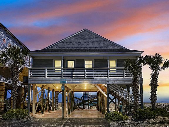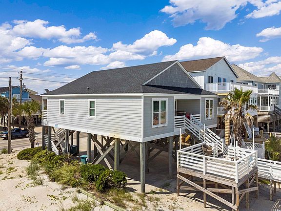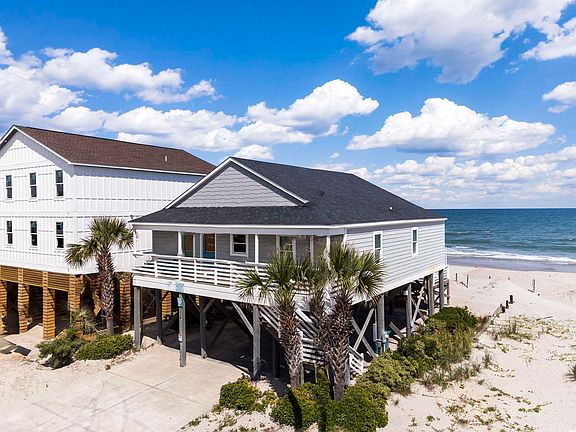 Relaxing oceanfront year round beach cottage, nestled between the Garden City pier and Inlet Harbor. Imagine walking minutes to Garden City Pier, arcade, ice cream and restaurants! Walk out your backdoor and relax on your deck area with an oceanfront view or walk down your private pathway to put your toes in the sand. Live the vacation lifestyle in this open floor plan, 4 bedroom, 4 bathroom home. Two of the bedroom en-suites are direct oceanfront view. All 4 bedrooms boast a king bed, with the master also having a twin daybed. Family room is open and airy with a cathedral ceiling and spacious for entertaining easily between kitchen and family area. A sofa in the family room also has has a sofa bed. The home is being sold completely furnished. Great opportunity for a second home or investment property with short term rentals allowed and NO HOA. New HVAC system installed in 2022.