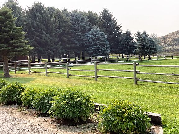 A peaceful oasis...this beautiful 4 bedroom/3 bath home with attached 2 car garage is concealed and sheltered by groves of flourishing mature trees. Plenty of welcoming outdoor living space with a gorgeous shaded yard, large deck, beautiful stone patio, and garden space. Surrounded by horse pastures, abundant wildlife and beautiful views. Less than 10 minutes from downtown historic Cody, WY. Additional features include bunkhouse, potting shed, electric and gas fireplaces, and large walk-in closet in master bedroom. Owner manages yard and horse pasture maintenance, irrigation, and mowing. One small dog or cat allowed (yard is not fenced) with a $750 non-refundable deposit. Pet situation negotiable. Owner pays water, and 1/2 power. Renter pays 1/2 power, gas, trash service (required), and internet/cable. Snow removal the responsibility of the renter. No smoking on property. Background checks required. Pasture and shop not included in leased area.