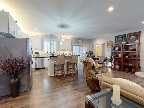 Situated on just over 2 1/2 acres with creek access sits this 3 bedroom 2 bath new construction home! Enter through the front door to an open kitchen to living room combo. Newly added under/above lighting on the cabinets. Oversized master bedroom provides you with plenty of space & possibilities, especially with the huge walk in closet. Radiant floor heat throughout, perfect for your toes in the winter. Garage and new outbuilding shed provide you with plenty of storage. Built by Plumb Level & Square in 2018. New paved driveway put in by Alex Cole paving, all new landscaping by The Plantsman, new custom blinds throughout with remotes, oversized shed, new back & front stone patio & fenced in backyard. One floor living at its best!