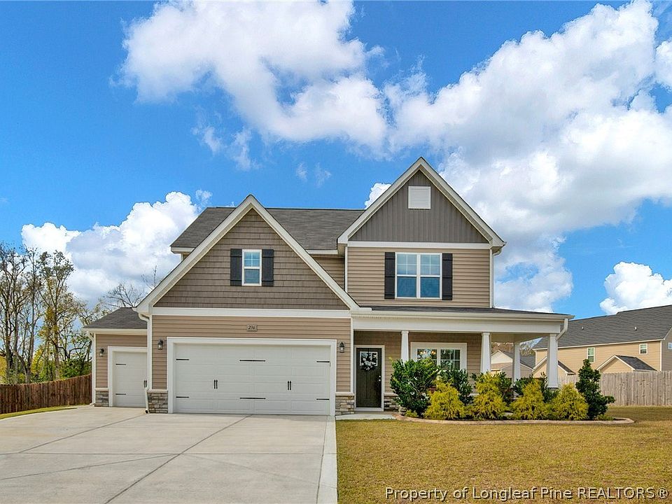 Gorgeous one owner home on .83 acres in a cul-de-sac w/open concept & fresh paint throughout. Located in Hoke Co.(no city tax), this home offers a formal dining room, designer kitchen w/large island, granite counters, SS appliances and a pantry. The first-floor boasts upgraded light fixtures & laminate floors in the kitchen, dining, 1/2 bath, & 2 story great room! Owner's suite is downstairs w/trey ceiling and beautiful bath - dual vanity, garden tub, separate shower. The owners' walk-in closet connects to laundry room. Upstairs are 3 great size bedrooms (2 w/ walk-in closets) plus a loft. The 3-car garage is great for extra car/storage/or home gym w/ a passthrough & a side door for easy access. Beautifully landscaped yard w/more than 200 ft of custom curbing, privacy fence (2020), 10x16 premium storage shed (2021) & the back patio has been extended to provide additional space for entertaining. W/great privacy offered by the wooded line, this home is better than new & could be yours!