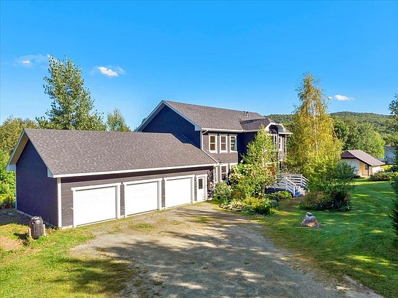 Sprawling mountain retreat with a private guest cottage minutes from Jay Peak Resort's world class skiing, golfing & more! Enter the main house through a tiled foyer w/ radiant heat that seamlessly flows to the living room w/ a gas fireplace and around to the family room with direct access to a multi-tiered deck leading to raised bed gardens & the surrounding grounds. A massive butcher block island is perfect for gathering in the chef's kitchen w/ granite counters, a professional Bertazzoni gas range & dual dishwashers while a large dining room affords a formal place to enjoy fresh meals! A convenient nearby mudroom w/ built-ins, a half bath & walk in pantry ties the home into the attached 3 bay garage w/ storage above. The upper level of the home boasts 3 large bedrooms & a full bath with laundry as well as a massive primary suite w/ a private balcony & stunning en suite bath boasting a tiled shower and soaking tub. The walkout lower level of the home features a spacious den & a private suite w/ a kitchenette, bedroom & a 3/4 bath. The uniquely styled guest cottage also features radiant heat and cathedral ceilings while boasting a lofted sleeping area, full kitchen and a private bedroom with en suite bath - offering flexibility for guests, or potential rental income! Situated in a quiet neighborhood on a wonderfully landscaped 3+ acre lot with seasonal mountain views in close proximity to all area amenities this property affords the ultimate in serenity and adventure alike!