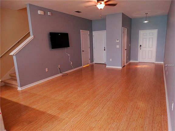 MOVE IN READY! yes, Immaculate and like brand new Townhome. Location, location, Just 6 miles away from Disney World, centrally located between Tampa and Daytona and zoned for Short Term rental! Lots of upgrades in this beautiful 3/2.1 split floor plan home, including Bamboo wood laminated floor on the first floor, carpet on 2nd floor, and all bathrooms with tile. Kitchen has Led modern lights, pantry, wood cabinetry with crown molding, granite counter tops and glass back splash, graphite/steel sink and upgraded faucets. All rooms with ceiling fans. Plus in-wall pest control- built-in system. A Bonus of 52" Samsung TV, Washer and Dryer will be given for a full price offer. Keypad lock at front door. Perfect for primary home or Vacation home/income produce investment. Hurry, come take a look and make it yours!!!