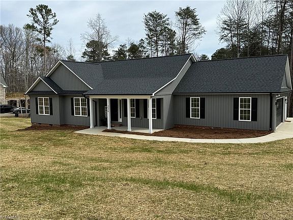 Gorgeous One level living on 1.60 ACRES thats not in a neighborhood!! No steps entry from large oversized garage, large level driveway w/extra concrete, perfect for RV parking and patio. Extra tall crawl space w/ walk in access to tons storage. Rocking chair front porch, 14 x 16 covered rear porch w/composite trek decking overlooking private back yard w/1.6 acres! Now for the inside of this new home! Great open floor plan w/vaulted ceiling, can lighting, LVP flooring. Huge Kitchen island, tons cabinets, granite, stainless appliances, large pantry w/barn door, door leading to covered back porch! Livingroom has built ins, fireplace, vaulted ceilings! Large laundry room w/ cabinets, tile floors in baths. 4th bedroom can be an office with its own seperate entrance, large bedroom sizes, wide hallways and doorways. Primary has vaulted ceiling, custom shelving in large walk in closets, Primary bath has granite, tile, large walk in shower & more! This is a must see in wonderful location!