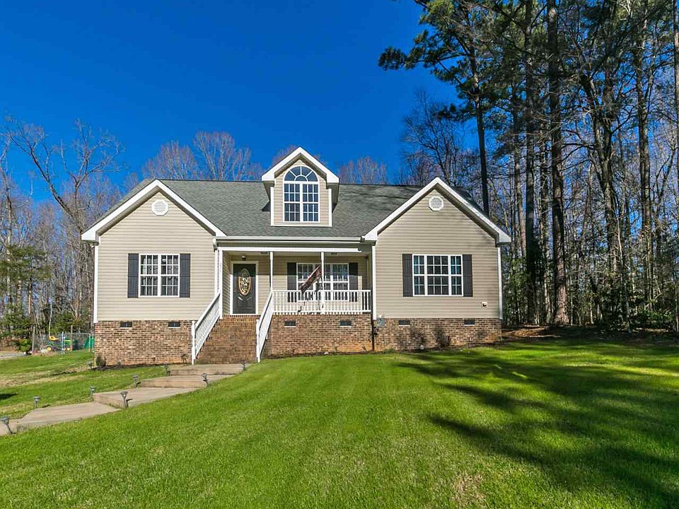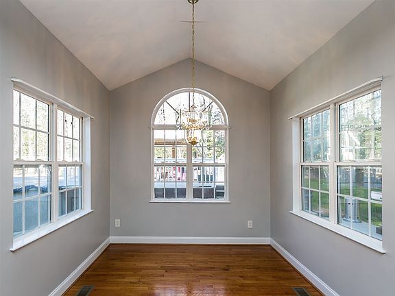 Beautiful 3 Bedroom 2 Bath Home in private setting, nestled on a large over-sized lot at Lake Royale. Open floor plan with hardwood floors and plenty of light. White cabinets, stainless steel appliances, eat-in kitchen with plenty of light from gorgeous round-top window. Nice Master bed and tiled bath with his/her sink and nice tub. Fenced backyard with built-in decking, gazebo, above ground pool, and hot tub! Unfinished upstairs area already wired and plumbing roughed in.