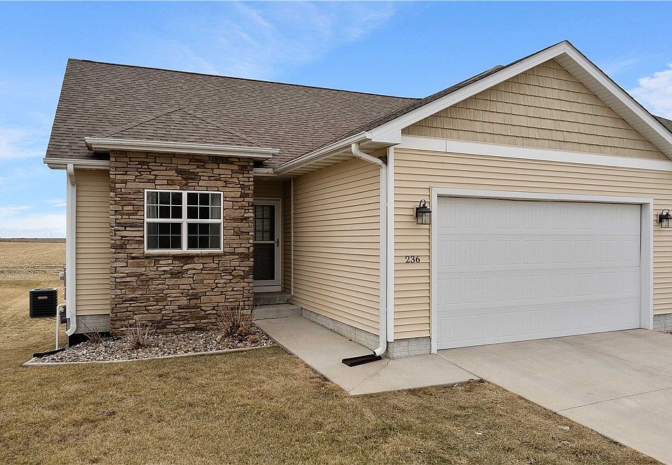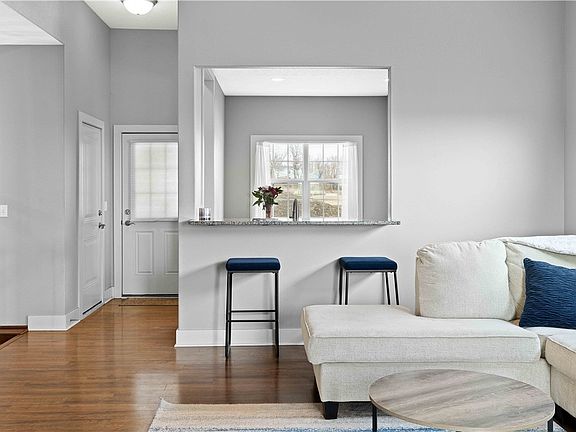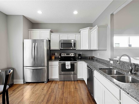 This stunning Madrid townhome boasts 3 bedrooms & 2 bathrooms. Constructed in 2015, it showcases sleek white kitchen cabinets, stainless steel appliances, & elegant granite countertops. Gorgeous hardwood floors, a cozy gas fireplace, a spacious master bedroom with a walk-in closet, and convenient main floor laundry are just a few of the many features you'll find in this home. Enjoy relaxing or entertaining on the large deck, complete with a built-in shed underneath. With a lower level that adds an additional 735 sq ft giving a total of 1700 sq ft, this home is beautifully finished with daylight windows, two bedrooms, a family room, a full bathroom, and a large storage area. You'll also appreciate the sizable two-car attached garage!