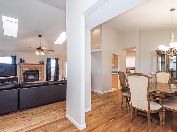 This ranch has it all! Nestled in a quiet cul-de-sac, but a great location close to everything. Pull up on the extra-wide driveway to this neat & tidy, brick/vinyl, nicely landscaped home with a cute covered front porch. Step into the foyer..you'll love the wide open, freshly painted space w/ dramatic vaulted ceilings w/ skylights, in the living rm, dining rm & kitchen. A rare find are the hardwood floors, not just in the main living area, but in all three bedrooms as well! The eat-in kitchen has newer stainless steel appliances (fridge stays!), breakfast bar, ceramic tile floors, pantry & a door that leads to the deck which overlooks the huge backyard w/ a stamped-concrete patio & bonus play set. Split bedroom plan! The master suite has walk-in closet, full bath w/ double sinks, vanity seating, linen closet & separate tub/shower. Main floor laundry (w/d stay!) The walkout lower level has brand new carpet in the large family rm. Tons of storage & newer sump pump. Clean & move-in ready!