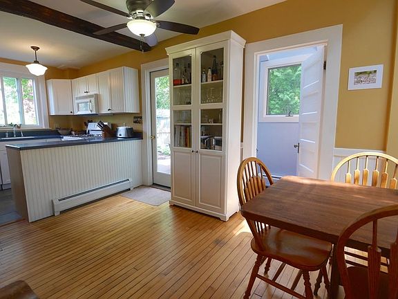 Downtown living just off the beaten path! Tucked away off the road at the quieter end of State St, this charming, well kept 3 bed/1.5 bath Northampton Colonial is close to everything. Walk to downtown cafes, restaurants and shops. Convenient to major routes and just a stones throw from the bike path and a community park. First level has a living room, updated kitchen open to a sunny dining area surrounded by windows, a sparkling 1/2 bath and entry foyer. 2 bedrooms and a full bath on the 2nd floor. Wood flooring throughout the first 2 levels except for kitchen and bathrooms. The bright, airy 3rd floor can be used as a bedroom or whatever your heart desires. The pretty, peaceful fenced in yard with a deck just off the kitchen/dining room is a nicely landscaped secret oasis. Newer roof (2012) and windows, clean super insulated basement and more. Multiple skylights. Nicely maintained and updated. Nothing to do but move in & enjoy easy living! Showings begin at the Open House Sat 6/22 12-2