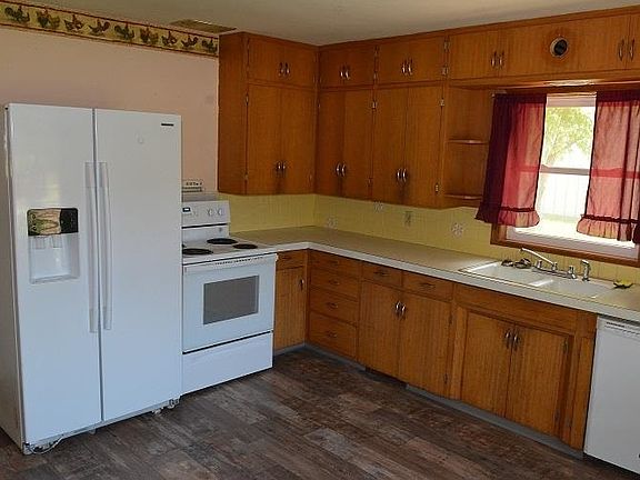 Small town home at one low price. Fine home that features 3 bedrooms with new carpet* new flooring in kitchen*1.5 baths* new carpet in living room*newer windows* Appliances and living room furniture shall stay* 2 car garage with alley access with garage door on both sides of garage* Super sized lot* Ideal for your next home or a great investment property.