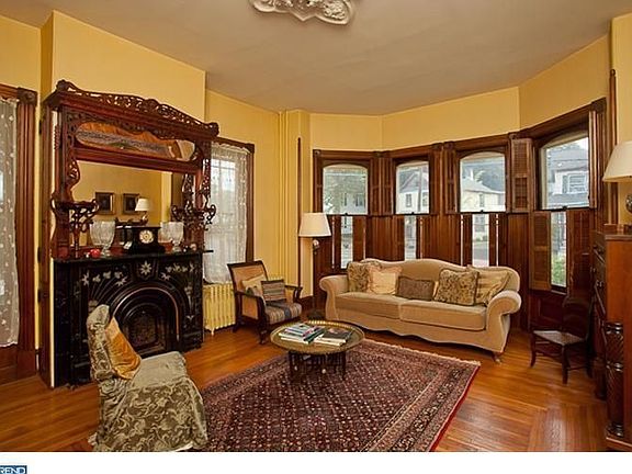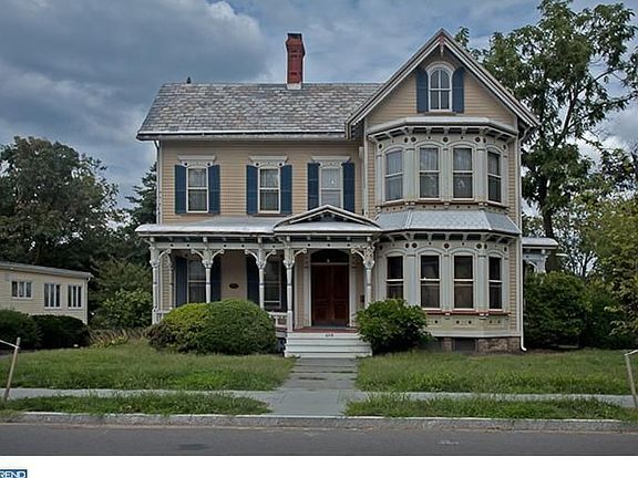 Among a collection of long admired Hightstown Victorians, The Cunningham House is sited on a corner lot, all the better to display the fish-scale pattern of its slate roof and gingerbread detailing along the friendly side porch. An adrable park and in-town shopping are only steps away.Remarkable period detailing remains unchanged, including tall pocket doors, ceiling medallions, corner moldings and basket weave flooring. The entry in paraticular is a most impressive example of Victorian-era attention to detail with a tiled vestibule revealing a substantial newel post and unique door trim. The living, dining and family rooms have decorative fire places and plenty of space for lounging and entertaining. A library with wood sheathed walls and built-in storage opens to a first floor guest suite. The kitchen, a later addition,is drenched in light and offers a 5-burner cooktop,built-in oven and microwave and French doors to a deck.Upstairs,three more bedrooms plus the master with a new bath ensuite.