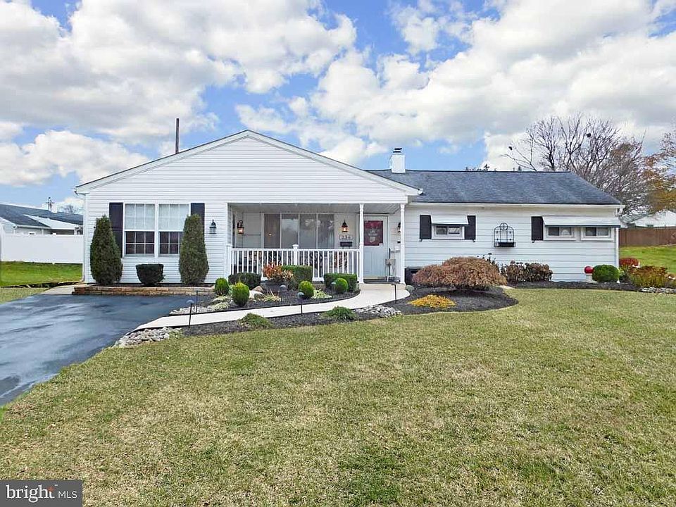 Exceptional, expanded and remodeled Rancher in Fairless Hills with an awesome, oversized lot. Great curb appeal with covered front porch as your entryway, professional landscaping and double sized driveway. Enter to the Formal Living Room with brand new carpeting and neutral tones. The brand new kitchen has an abundance of cabinets, counter space, stainless appliances, ceiling fan, exhaust fan to outside and extra cabinetry/counter by the Dining Area. There is a large Family Room addition with corner, gas fireplace, its own entrance, 2 closets and the Laundry Closet. There is a bedroom with its on full bath behind the Family Room. The other side offers 2 spacious bedrooms and a remodeled, hall bathroom. So many upgrades here, brand new roof being installed, gas heat, central air, electric heat in addition, along with gas fireplace that keeps that area toasty warm, all new sewer and water lines under slab, front porch, back patio and 10 x 20 shed in back. Possibility for In Law Suite set up. This home is well maintained and spotless!