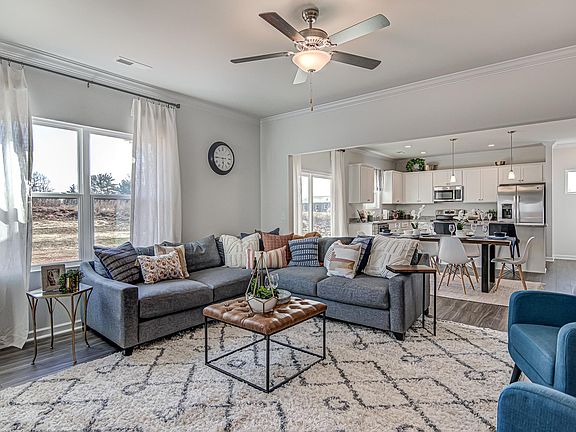 This Russell plan in our brand new Conway neighborhood is situated on a stunning pond homesite with a wooded backdrop. This two-story home features four bedrooms including a guest suite on main, three full baths and an expansive second floor loft. The kitchen comes equipped with stainless steel appliances with natural gas range, large island, tile backsplash, quartz countertops, and a walk-in pantry. The open-concept kitchen and great room make entertaining easy. Upstairs you'll find the spacious primary bedroom with en-suite bath. Primary bathroom features include a five-foot shower, dual vanities with additional counterspace and quartz countertop, linen closet and two large walk-in closets. The two additional upstairs bedrooms each have a spacious walk-in closet and share a full bath. The loft is great for movie nights or just winding down before bedtime. There is a spacious second floor laundry room conveniently located off the primary. Irrigation and architectural shingles are included! Garden Grove is located less than 10 minutes from charming downtown Conway and just 33 minutes from the beach. All photos are of a similar home and for reference only. Please contact listing agents for details.