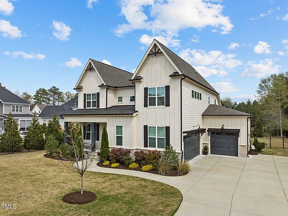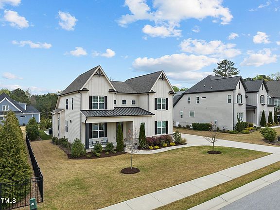 This home boasts exquisite outdoor living! Sliders from family room with 11' ceilings open to screened porch with fireplace. Swim in in-ground salt water pool or relax on the sundeck. Pool has heater/chiller. Enjoy your own private putting green, grassy area and with lush landscaping. PRISTINE condition!! Primary bedroom plus guest or office on main floor. Elevated trim detail throughout home includes cove crown, tray in dining & primary, large base moldings, coffered ceilings, shiplap & wall trim in several areas. Wide plank hardwoods throughout main floor and upstairs hallway. Open kitchen to family room with stone surround gas fireplace. Stacked cabinets, spigot above 5 burner cooktop with large island, quartz and leathered granite counters, large farm sink, subway tile backsplash, under cabinet lighting. 10' plus ceilings downstairs. Spa-like primary bath with free standing soaking tub, large walk-in shower with bench, dual vanity w/ quartz counters, separate commode area and fabulous closet with custom shelving. There is also a pass through in the closet to the laundry room with fun, decor tile floor, sink/cabinets. Upstairs you will find 3 additional bedrooms, 2 baths, a huge bonus with a built in desk area and abundant room to hang out or play games, walk-in storage. Great closet space in all rooms. The details and features are abundant-wifi controlled pool equipment & garage door openers, doorbell camera, Tesla wall charger, tankless HWH, drop zone/mud room, large 3 car garage with pedestrian door. This home is the one you have been waiting for. Community amenities. Prime location-minutes to restaurants, shopping & highways.