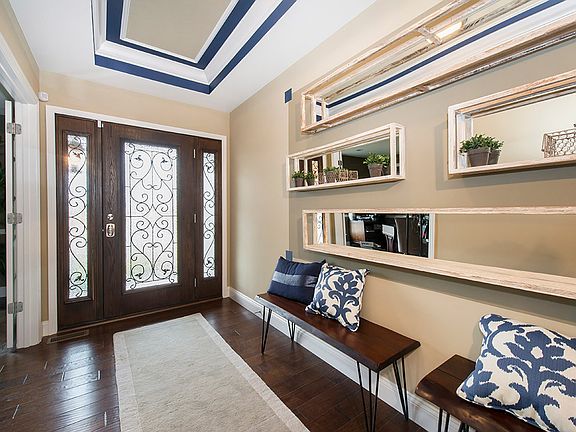 This Lombardo-built ranch has been the showplace for the neighborhood, & it is filled w/finishes you will love! Soaring 10' ceilings & hand-scraped maple hardwood floors flow throughout the open main level, including the great room w/a fireplace & ceiling speakers, & the well-appointed kitchen, w/white shaker-style cabinets, granite counters, breakfast bar island, walk-in pantry, custom lighting, instant hot water dispenser, & SS appliances, including a gas range, double ovens, & French door fridge. Home office w/French doors for privacy. Spacious owner's suite has a trey ceiling w/crown molding, walk-in closet w/custom organizer, & private bath w/dual sinks, soaking tub & separate shower. Walk-out lower level w/9' pour & roughed-in bath. Enjoy the level, irrigated, landscaped yard from the deck or aggregate patio. 3-car garage & holiday light package that makes decorating a snap! Neighborhood pool & playground. Easy access to I-70 & amenities. Wentzville (Holt) Schools. See it today!