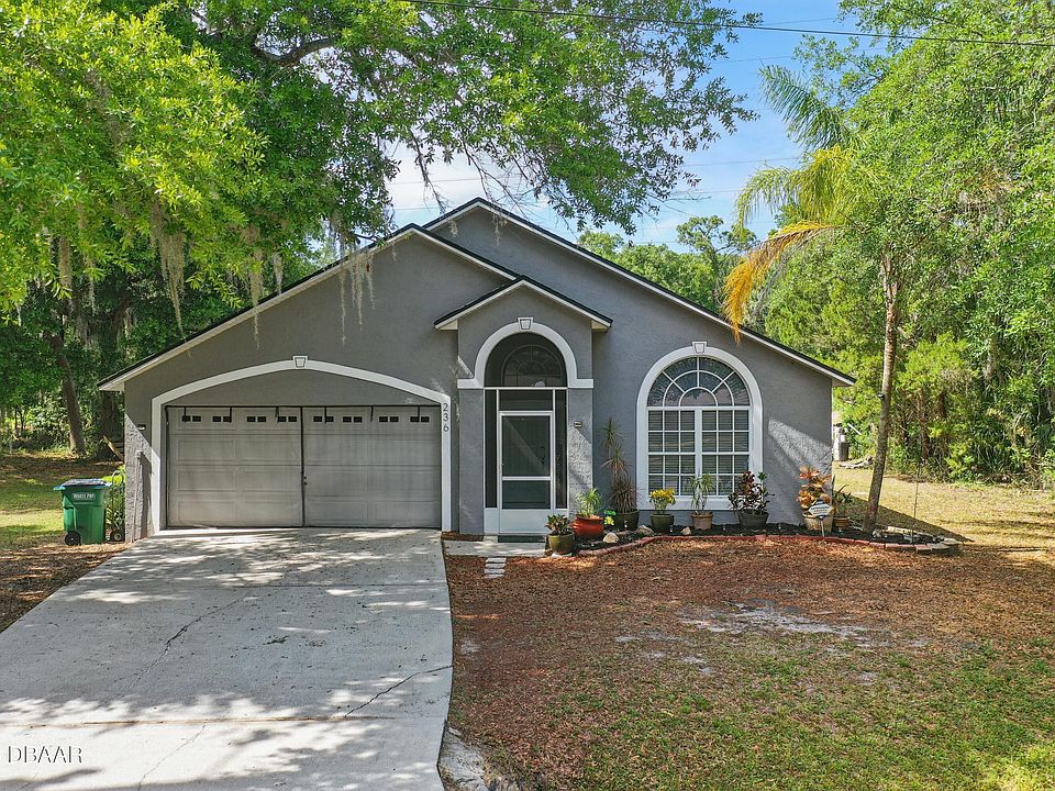 Tucked away near Debary's beloved historic district, this beautifully maintained 3-bedroom, 2-bath home offers the perfect blend of comfort, character, and location—all with no HOA restrictions! Inside, you'll be welcomed by soaring ceilings, tall baseboards, and an open, airy layout that's both stylish and functional. The kitchen shines with granite countertops and plenty of space for cooking and entertaining. Set on a rare double lot, the property features a spacious yard that backs up to a gorgeous wooded area, offering peaceful views and a private, natural setting. Whether you're relaxing on the patio, dreaming up a garden, or simply enjoying the view, this backyard is your own personal retreat. Located just minutes from the historic charm of downtown Debary, you'll have easy access to local shops, parks, and community events—yet still enjoy the quiet of a tucked-away neighborhood. A 2-car garage adds convenience and storage. This is a rare opportunity to own a beautiful home with space, style, and location. Come fall in love!