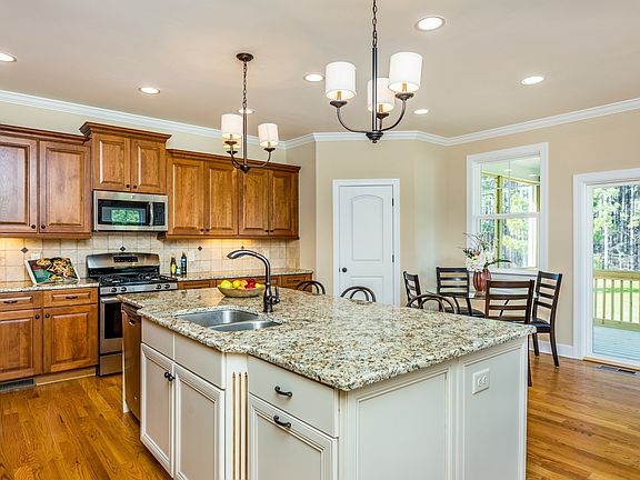 Built in 2015, this Rolesville two-story home offers a porch, fireplace, wood flooring,, stainless steel appliances, granite kitchen countertops, master bathroom with separate tub and tile-surround shower, bonus rooms, screen-enclosed covered deck, and two-car garage. Upgraded features include fresh interior paint. Clubhouse and trails are part of the Averette Ridge Owners Association Inc.