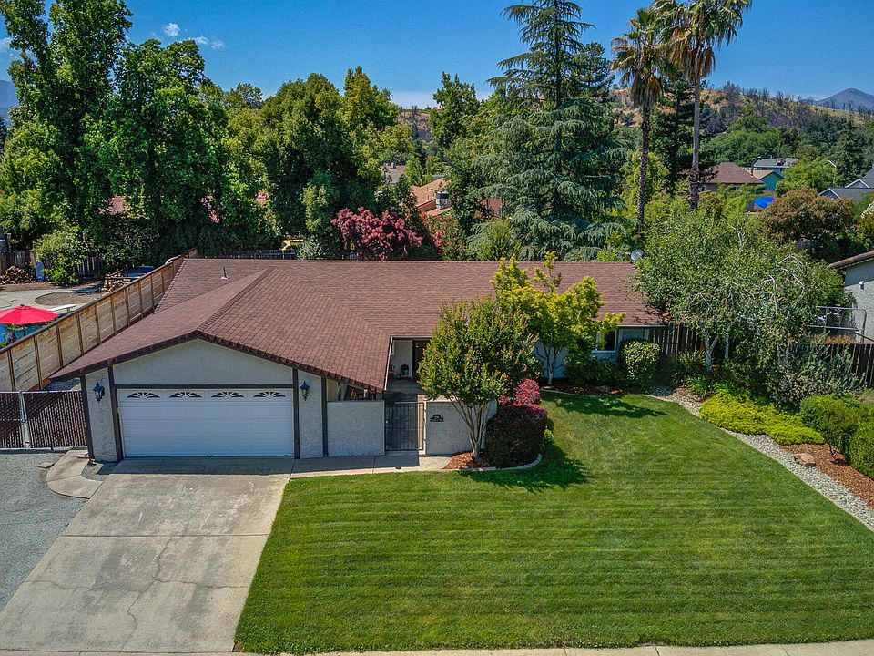 Lovely Lake Redding home with attractive features inside and out! This home has stucco exterior and roof was replaced in 2013. The HVAC is just 10 years young and the home has been well maintained. Tile flooring in the entry, kitchen, family room and laundry. Beautiful window coverings throughout the home. The master has a nice patio of it's own and there is another patio off the family room. The living room is spacious and has a pellet stove. The kitchen has been updated and the refrigerator is included. There is a sweet front courtyard with a gated entrance. On the side you will find a large RV parking area behind a double gate. This home is turn key! Don't miss out on this very nice opportunity to purchase a lovely home in Lake Redding Estates where walking trails abound!