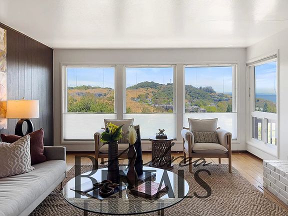 Super location. Main level: large living room with fireplace and views of the Bay and hillside. Formal dining room with deck and same great views, kitchen has stainless appliances and a 5 burner gas cooktop, adjacent is the breakfast area with french doors to patio and landscaped front garden. Also on this level, 2 spacious bedrooms with large closets and extra storage, 2 baths and direct interior access to the large 2 car garage with 2 newly installed EV chargers. Lower level: includes a 3rd bedroom, 1 bath and a very large and light filled view family room (possible 4th BR) with french doors to patio and landscaped garden. Additional workshop area plus lots of extra storage. This house has it all, VUS, natural light throughout, decks, patios and landscaped front and back gardens. Easy access to SF and Hwy 101, close to several shopping centers and restaurants. You won't want to miss this great opportunity! Please email and tell us a little about yourself. Stevie DeMott DRE #02007384 AndreaRentals, BRE #02003472 A Rental Concierge for Bay Area Owners and Renters Tenant responsible for all utilities. Owner covers landscaping. Deposit = 1 month's rent. Pet considered with additional deposit.
