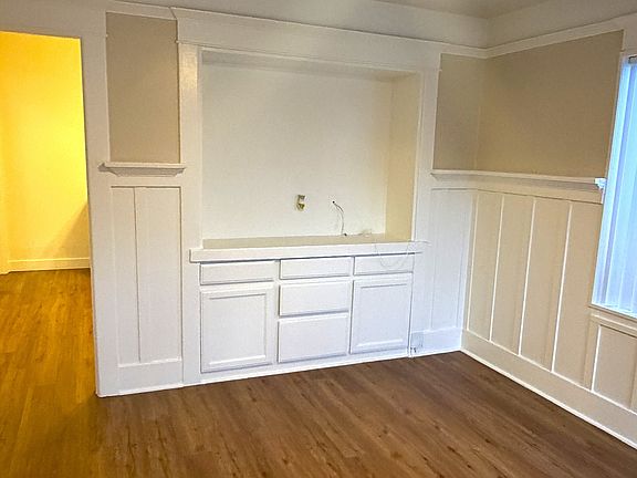 Lovely front porchHuge kitchenBuilt-in cabinetryWood laminate flooring