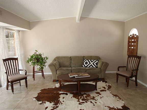 Townhome in the center of town, P.U.D. development with large backyards and lots of privacy. This home has 1352 sqft of living space, 3 Bdrm and 2 bath, Private tiled entry, Tiled flooring entry, livingroom, dining, kitchen, baths and hallway. New carpeting in bedrooms. Fresh neutral beige painted walls. Atrium off dining area and master bedroom. Kitchen features tiled counters and tiled flooring. Backyard has patio slab, block wall fencing, storage shed, large shade trees and lots of room. Large oversized 2-car attached garage with roll up garage door. Washer and Dryer hook ups in Garage. You are sure to enjoy Carefree Living in this Quite Townhome development. Home Owners Association fee includes your entire water bill....