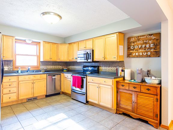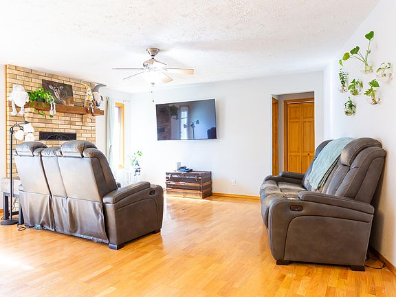 Beautiful & updated corner lot home with mature trees! Wonderful home ready to move into with wood floors, lots of storage, and large open rooms. Spacious living room with fireplace that opens into large dining area. Great kitchen with lots of countertop & cabinet space. Nestled on a charming corner lot surrounded by mature trees, this beautiful home is ready for you to move in and make it your own! Step inside to a spacious living room featuring a cozy fireplace, seamlessly flowing into a generous dining area--perfect for entertaining. The U-shaped kitchen is both functional and inviting, offering ample countertop space and cabinets to suit all your cooking and storage needs.Relax in the serene master bedroom, which opens directly to the peaceful backyard patio and privacy-fenced yard, ideal for unwinding after a long day or for hosting bbq's and marshmallow roasts. The updated master bath boasts a modern walk-in shower and a spacious walk-in closet for added convenience. Real wood doors throughout the home add warmth and character.The oversized two-car garage provides plenty of space for vehicles and storage, while the private, fully-fenced backyard offers an intimate retreat with a gated entry, patio and shade trees for ultimate relaxation. Plus seller offers $8,000 credit at closing for new roof per quote in hand, no issues but age is unknown so take the opportunity to get an insurance discount on this one! This home is in a quiet cul de sac near the edge of town, walking distance to the park, near shopping, and schools. Come see for yourself-- schedule your viewing today!