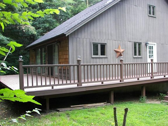 Great location and privacy on this affordable three bedroom, 2 bath home with wrap around deck situated on 3+ acres. Enormous, vaulted ceiling living room with two sliders to an over-sized deck and many recent renovations throughout make this house move-in ready! All this and being very close to Laurel Lake make this a must see property!