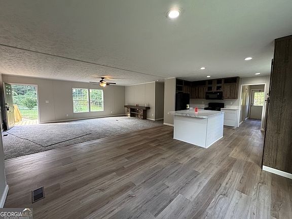 Huge 4 bedroom, plus additional bonus room with closet, 3 bath split bedroom design home on 1.5 private acres close to Blue Ridge GA. Fabulous open floor plan Living Room/Dining Room and Kitchen with immense center island, new appliances, country farmhouse style cabinets and lots of windows. New carpet, new vinyl, new lower cabinets, fresh paint, new HVAC. Built in's in Living room. Large master with ensuite bathroom with double vanities, walk in shower, soaking tub and walk in closet, 4 additional guest bedrooms and 2 additional guest bathrooms. all of this on 1.5 private acres. Home eligible for 100% VA or USDA financing, 96.5% FHA financing also possible seller financing available.