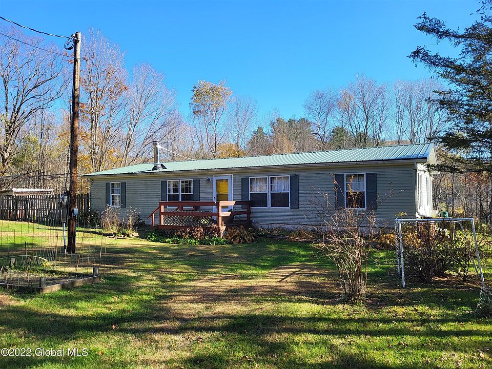 You will want to see this lovely manufactured home on 3.87 acres. A beautiful corner lot with lots of gardens, fencing and outbuildings for animals (or take them down for a beautiful yard). Home features 4 bedrooms, living room with fireplace, kitchen with center island opens to dining room with slider to back deck with pergola. Large utility room with utilities, laundry and back door.