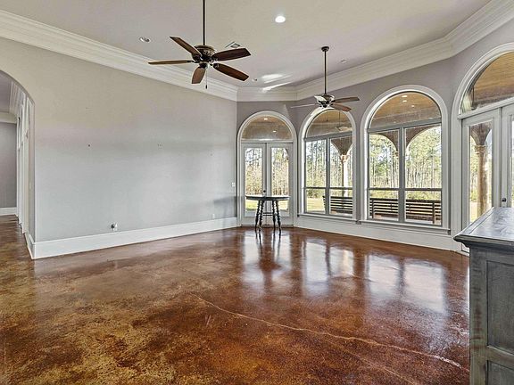 This exquisite custom-built estate sits on 36 acres of serene, picturesque land, offering privacy and breathtaking views. The home features 5,125 heated square feet, with a total of 7,140 square feet under the roof, providing ample space for luxurious living. Inside, you'll find 4 spacious bedrooms, each with its own private ensuite bathroom, plus an additional half bath for guests. The home boasts two expansive living areas and a game room, ideal for both entertaining and everyday living. At the heart of the home is a chef’s dream kitchen, equipped with top-of-the-line appliances, a double oven, and custom-built cabinets featuring built-in spice racks, pull-out shelves, and a dedicated built-in mixer shelf, a grill with a griddle, along with a walk-in pantry, provide both convenience and style for culinary enthusiasts. The interior showcases-stained concrete floors throughout, heavy crown molding, detailed ceilings, floored attic, combining modern elegance with durability. Step outside to the large, covered patio, where built-in surround sound creates the perfect atmosphere for entertaining. The outdoor kitchen is fully equipped with a grill, rotisserie, ice maker, and additional natural gas connection, making it ideal for outdoor gatherings. Surrounded by the 36 acres of rolling landscapes , this property offers the ultimate in privacy, space, and potential for a variety of outdoor activities, whether it be equestrian pursuits, farming, or simply enjoying the tranquility of nature. Don't miss out on this grand opportunity to make this your new address. Please call today to schedule your private viewing.