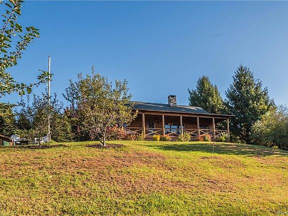 CHARMING 3 BR LOG HOME ON 4.6 PICTURESQUE ACRES WITH VIEWS-POND AND DET 3 STALL BARN/GARAGE WITH COVERED PARKING AREA-WONDERFUL COVERED PORCH ACROSS THE WHOLE FRONT OF HOUSE TO VIEW THE VIBRANT FALL COLORS-STONE FIREPLD LIVING ROOOM-WARM WD FLOORS-BEAMED CEILING KITCHEN-2 BRS DOWN AND 1 BEDROOM AND LOFT ON SECOND FLOOR-CATWALK UPPER LEVEL-NEWLY REMODELED 1ST FR BATH WITH HEATED FLOOR-FINISHED REC ROOM-NEWER APPLIANCES-FRUIT TREES-RAISED VEG BEDS-CLOSE TO SHOPS AND SCHOOLS YET QUIET LOCATION-HYDRANGEAS-LAST ROSE OF SHARON BUSHES--HURRAY WILL NOT LAST
