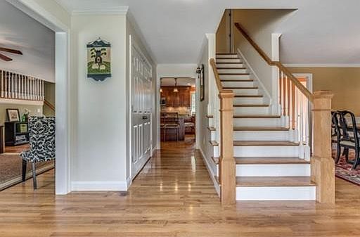This gorgeous 2014 Colonial caters to your every need. The 1st level boasts a gourmet kitchen with center island, granite counters, tile backsplash, SS appliances, pantry, eat-in area & sliders leading to the deck & fenced yard. The adjacent formal dining & living rooms allow for a flexible floor plan. A few steps up is a stunning great room with a gas fire place & cathedral ceilings, all of which make this home comfortable & perfect for entertaining. A ½ bath with laundry & access to the 2 car garage complete the 1st level. Level 2 features 4 bedrooms including a large master suite with a walk-in closet, en-suite bath & whirlpool tub and a family bath with double sinks. A tastefully finished lower level hosts a game/exercise room and excellent storage. No detail has been spared with hardwood floors throughout, crown moldings, & a walk-up attic that offers potential for future expansion. Close to the commuter rail, highways & area amenities, this is the one you've been waiting for!